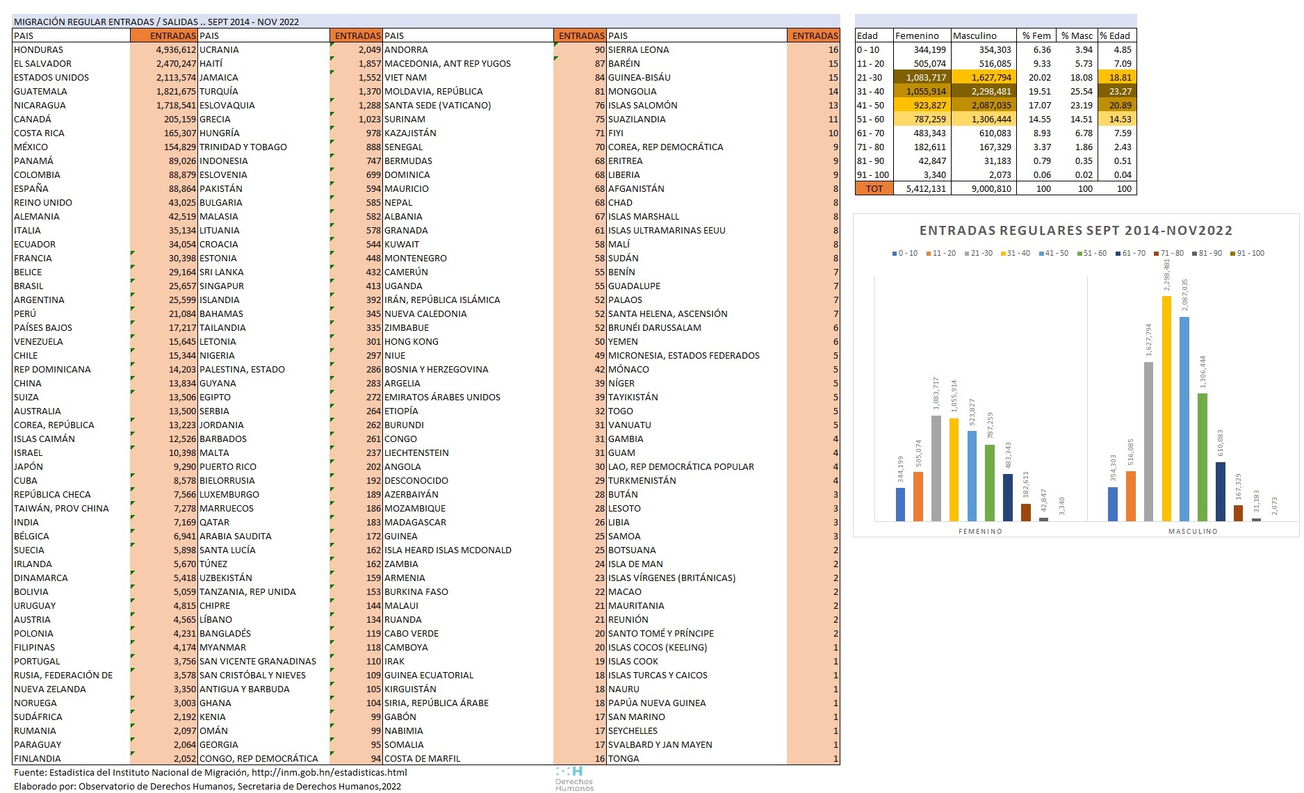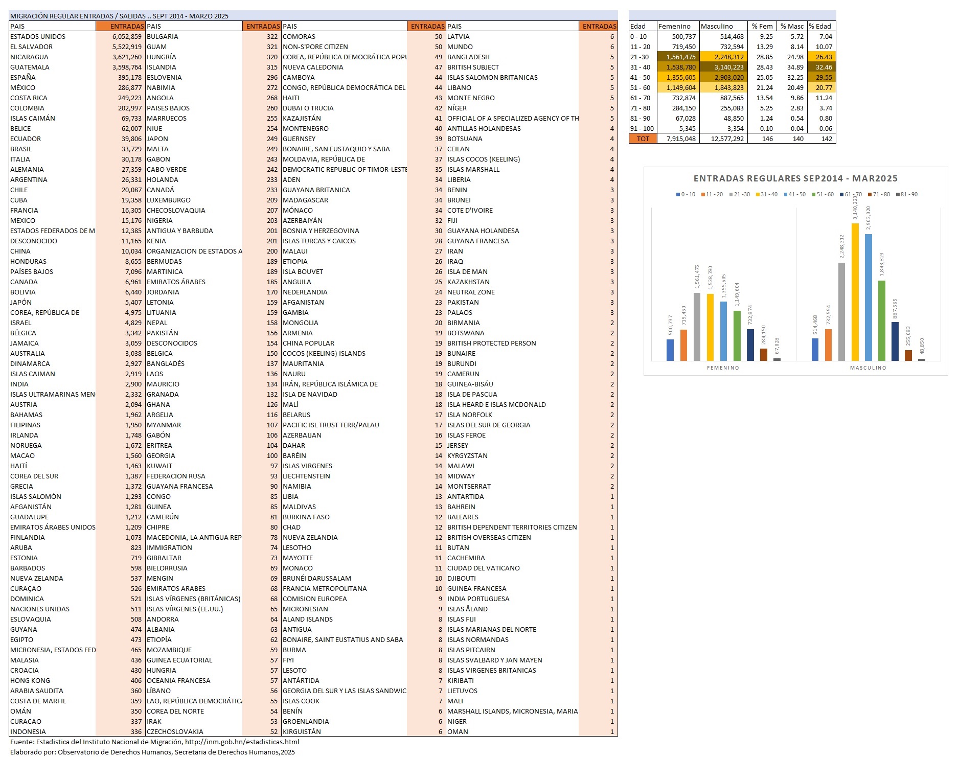 Indicador de Migración, Entradas Regulares, Sept2014 - Nov2022 - Marzo2025