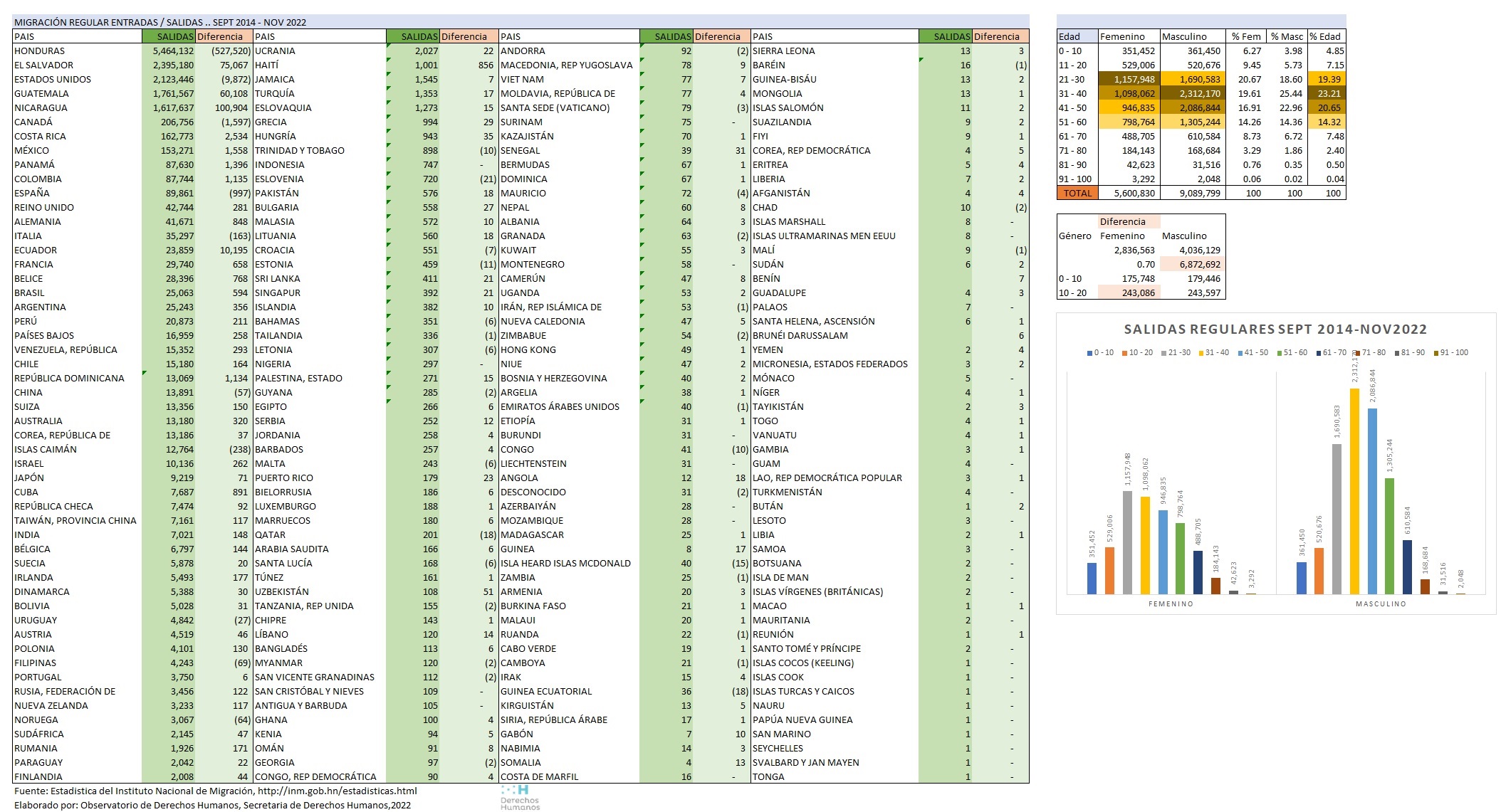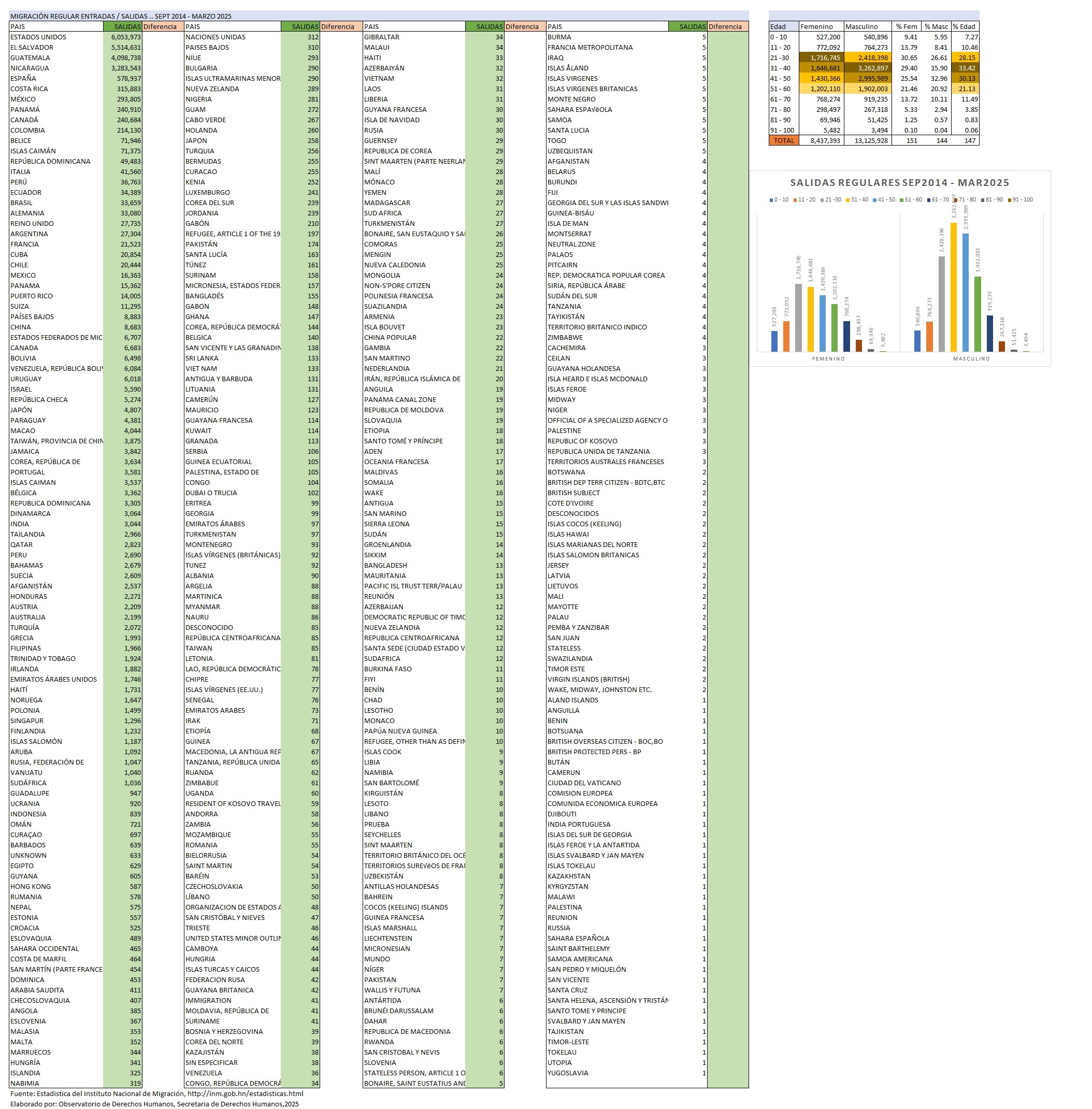 Indicador de Migración, Salidas Regulares Sept2014 - Nov2022 - Marzo2025