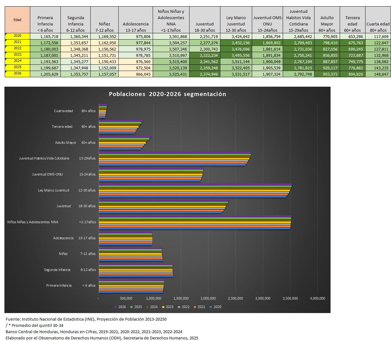 Segmentación por poblaciones, años 2020-2026, 2020-2030